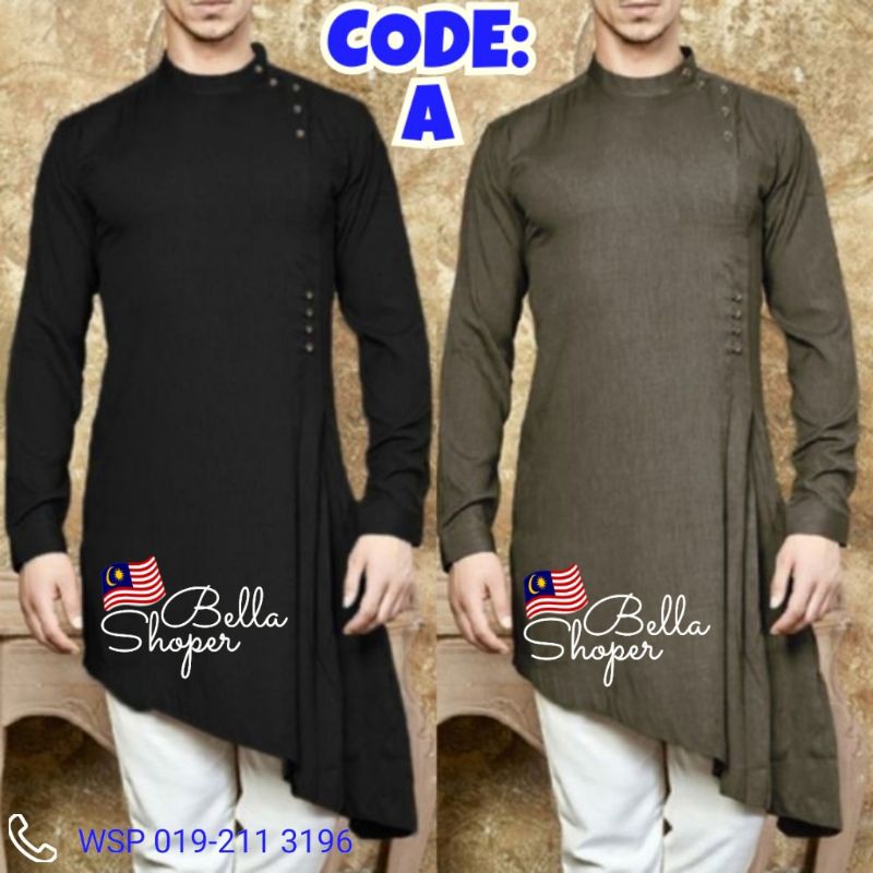 Kurta India Punjabi Sultan Baju Raya Melayu Muslim Men Jubah Black Button Green Shopee Malaysia