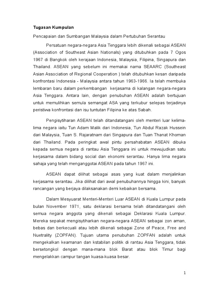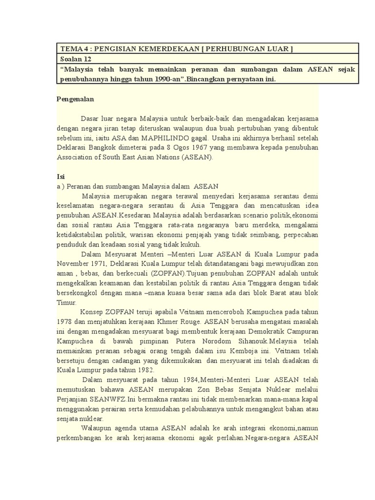 Sumbangan Malaysia Dalam Asean Pdf