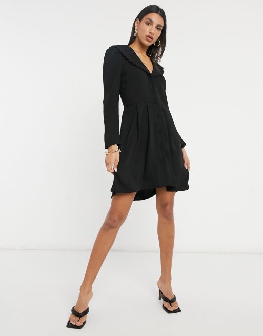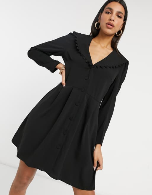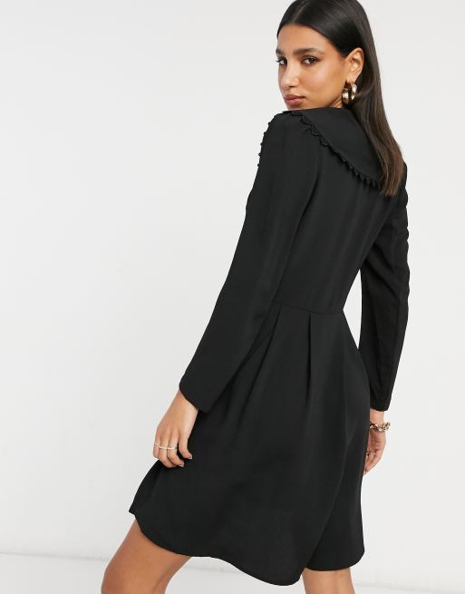 Vila Button Through Dress With Embroidered Collar In Black Asos